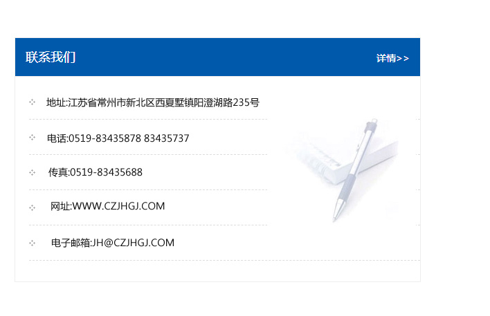 地址:常州市新北區友邦商務大廈1幢16、17層  電話:0519-85101652  傳真:0519-85112595  郵編:213022  網址:www.cz-jiayue_cn.xiduenergy.com  郵箱:xiajifengaa@163.com